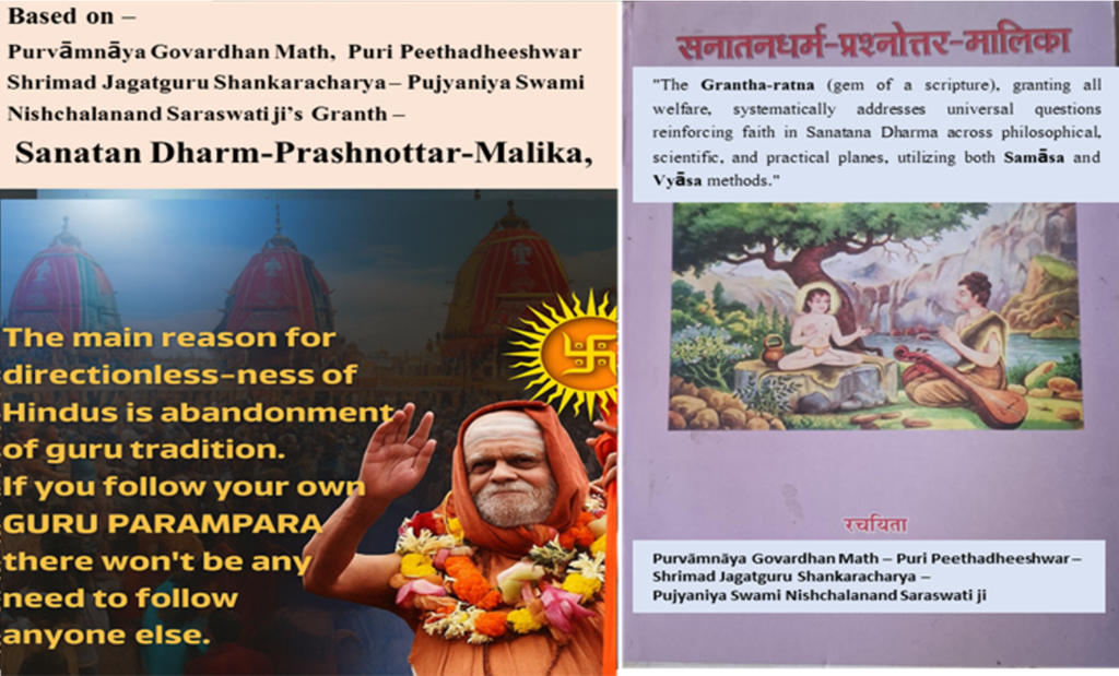 This entire article is based on the authentic views of Pūrvāmnāya Govardhana Matha Puri Peethadhishwar, Shrimad Jagadguru Shankaracharya Swami Nischalananda Saraswati Ji from his work ‘Sanatanadharma-Prashnottara-Malika’.