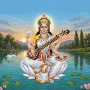 “Now I shall speak in detail about the Goddess of Speech; listen attentively. Her name is Saraswati. She is the presiding deity of speech, intellect (buddhi), learning (vidya), and knowledge. All forms of learning and wisdom are her manifestations. Therefore, humans acquire intelligence, insight, poetic talent, creativity, and memory only through her grace.