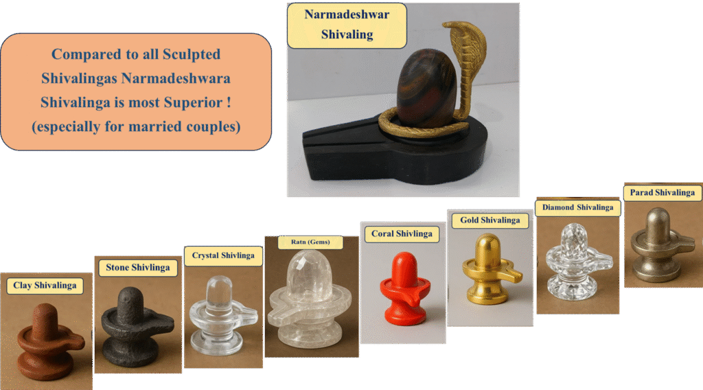 Besides these, the scriptures also detail the methods for constructing and worshipping many other types of Shivlingas—each for the fulfilment of different desires—including those made from: